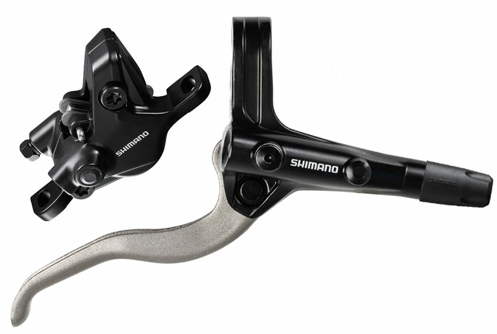 Le frein à disque hydraulique à 2 pistons de Shimano, avec son levier de frein ergonomique BL-MT401 à 2 doigts et son étrier BR-MT410 pour des performances de freinage équilibrées, établit la norme des systèmes de freinage performants et abordables.