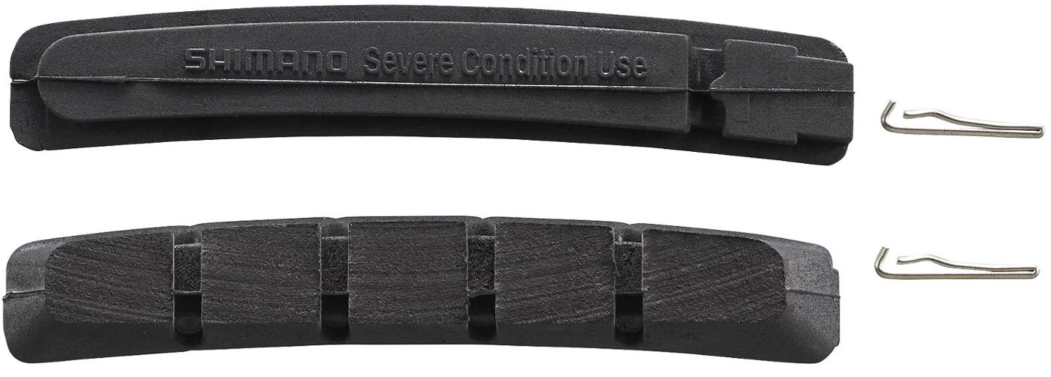 Shimano M70R2 brake pads for severe condition and aluminum rims. The ideal matched material hardness of Shimano cartridge pads for XTR / Deore XT / Deore LX / Deore / DXR V-Brakes ensures high braking performance with excellent controllability.