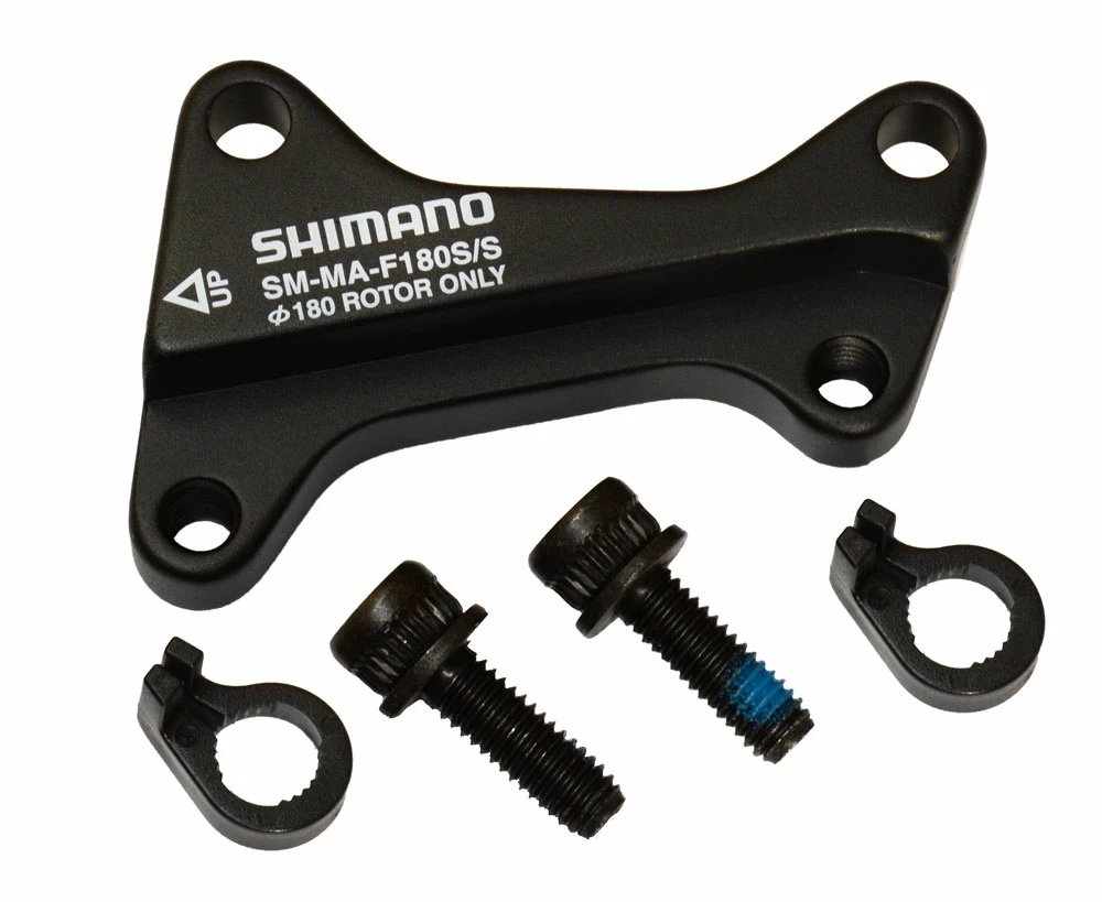 L’adaptateur Shimano SM-MA-F180S/S permet le montage d’étriers de frein Shimano IS2000 standard sur des fourches à fixation directe IS2000 standard en combinaison avec des disques de frein de 180 mm.