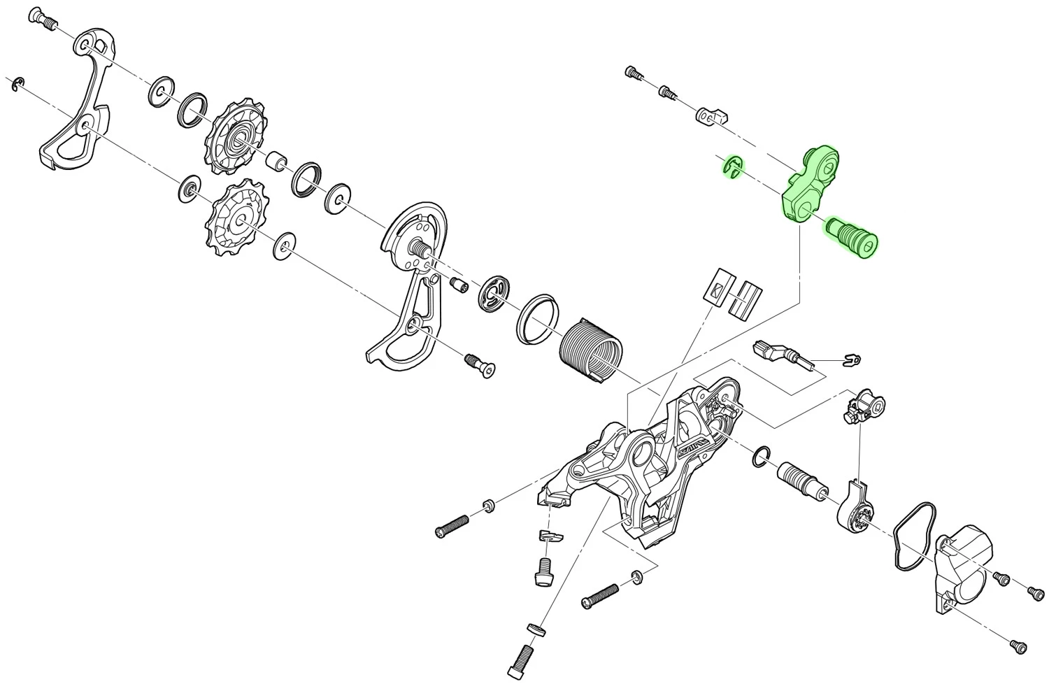 L’unité d’axe Shimano avec vis de fixation pour support de dérailleur SAINT RD-M820 10 vitesses.